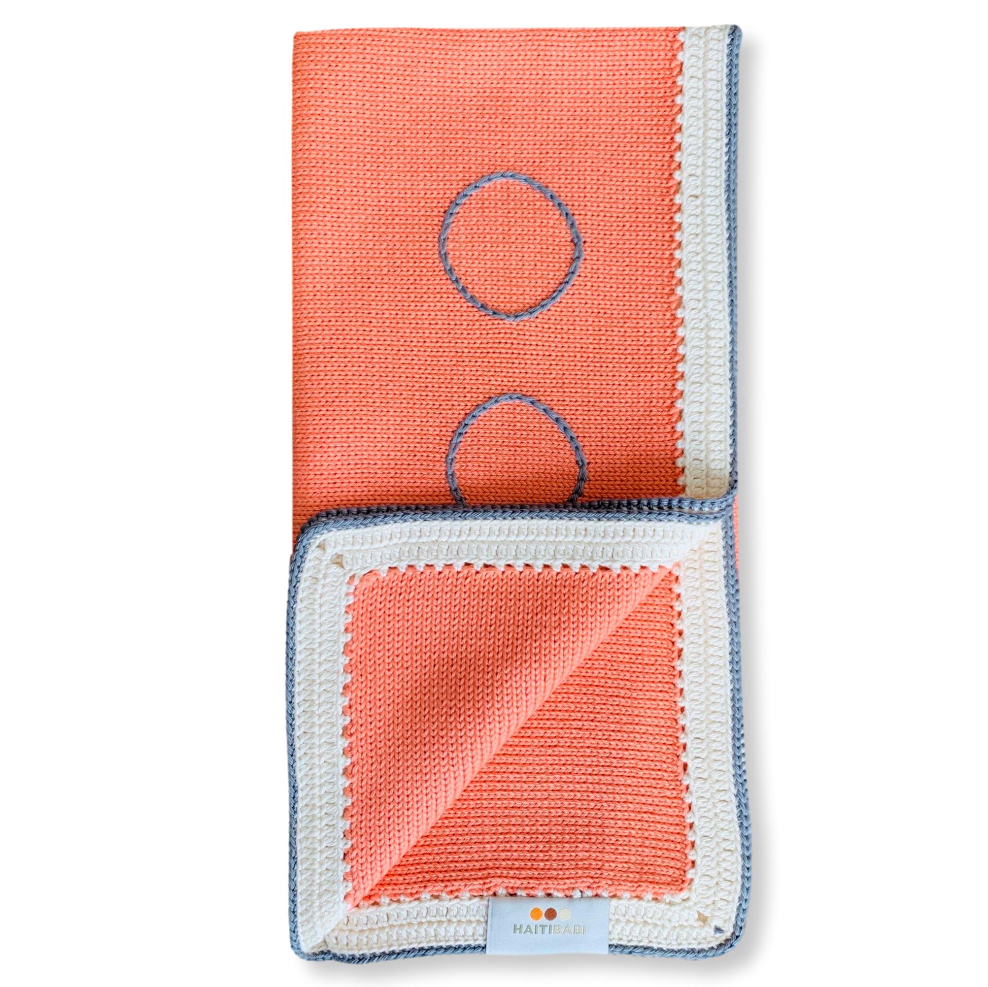 Whether it’s cozy stroller naps or everyday snuggles, our Coral Baby Blanket — accented with a Natural Shell Border and Stone Trim — brings warmth, comfort, and meaning to every moment. Thoughtfully handcrafted, this snuggly knit blanket is as beautiful in purpose as it is in design.