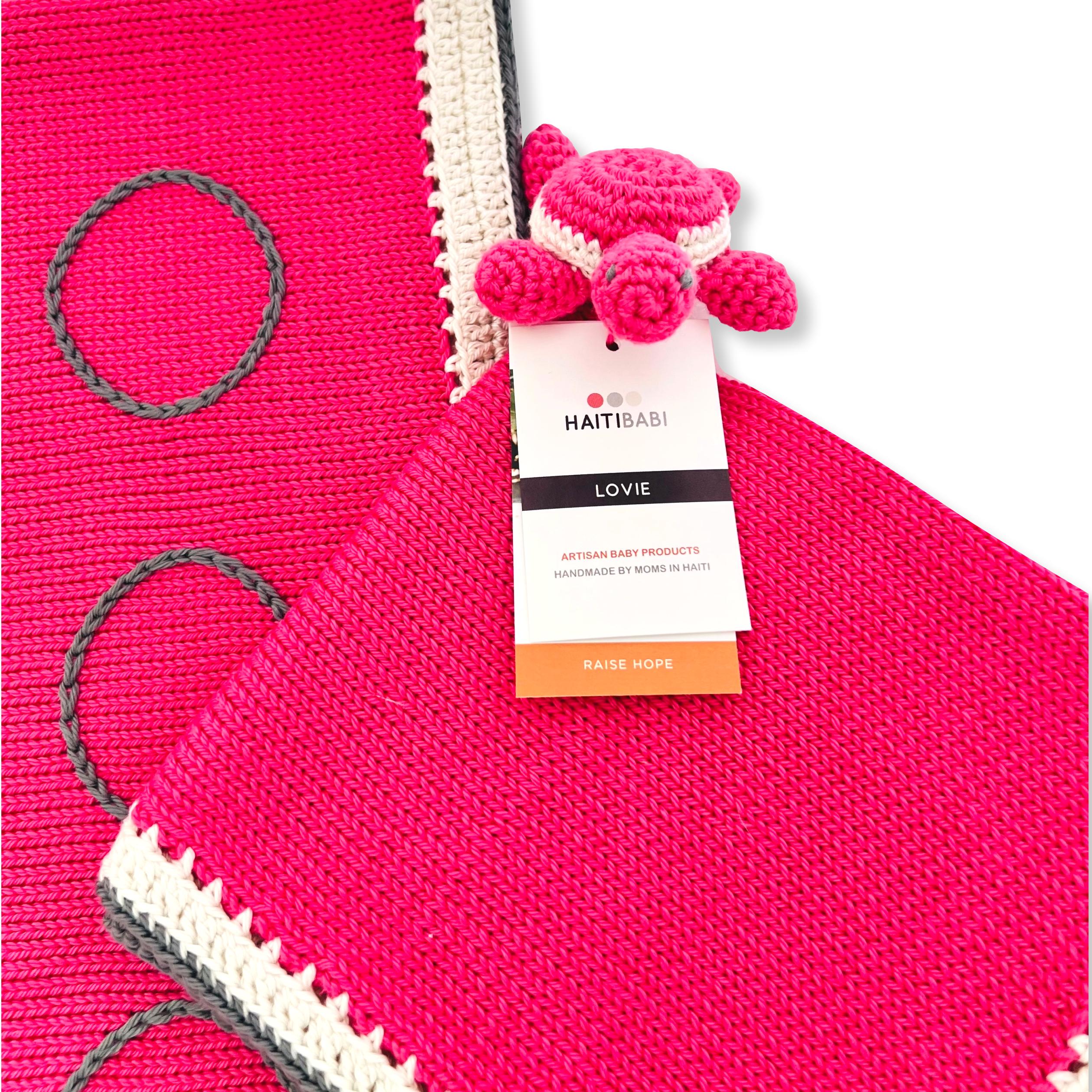 Each blanket and lovie is hand-knit and crocheted by moms in Haiti using premium, all-natural Ultra Pima Cotton. The luxuriously soft yarn is gentle against baby’s skin, won’t pill over time, and creates the perfect balance of warmth and breathability thanks to its unique knit texture.