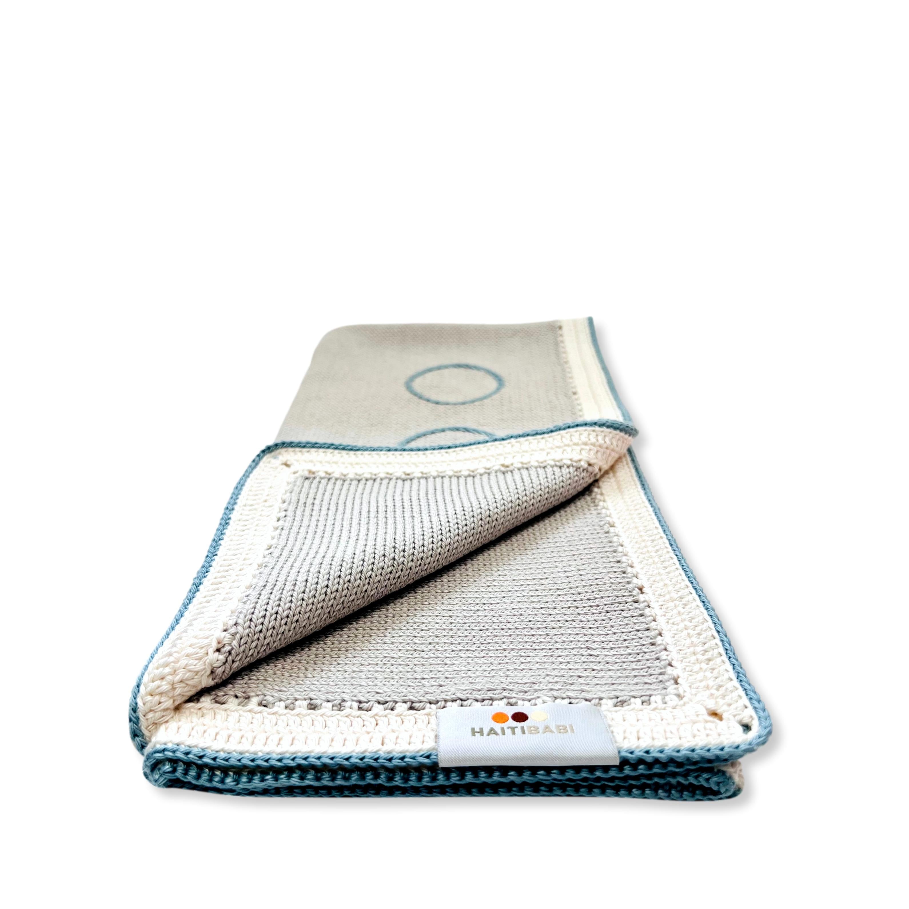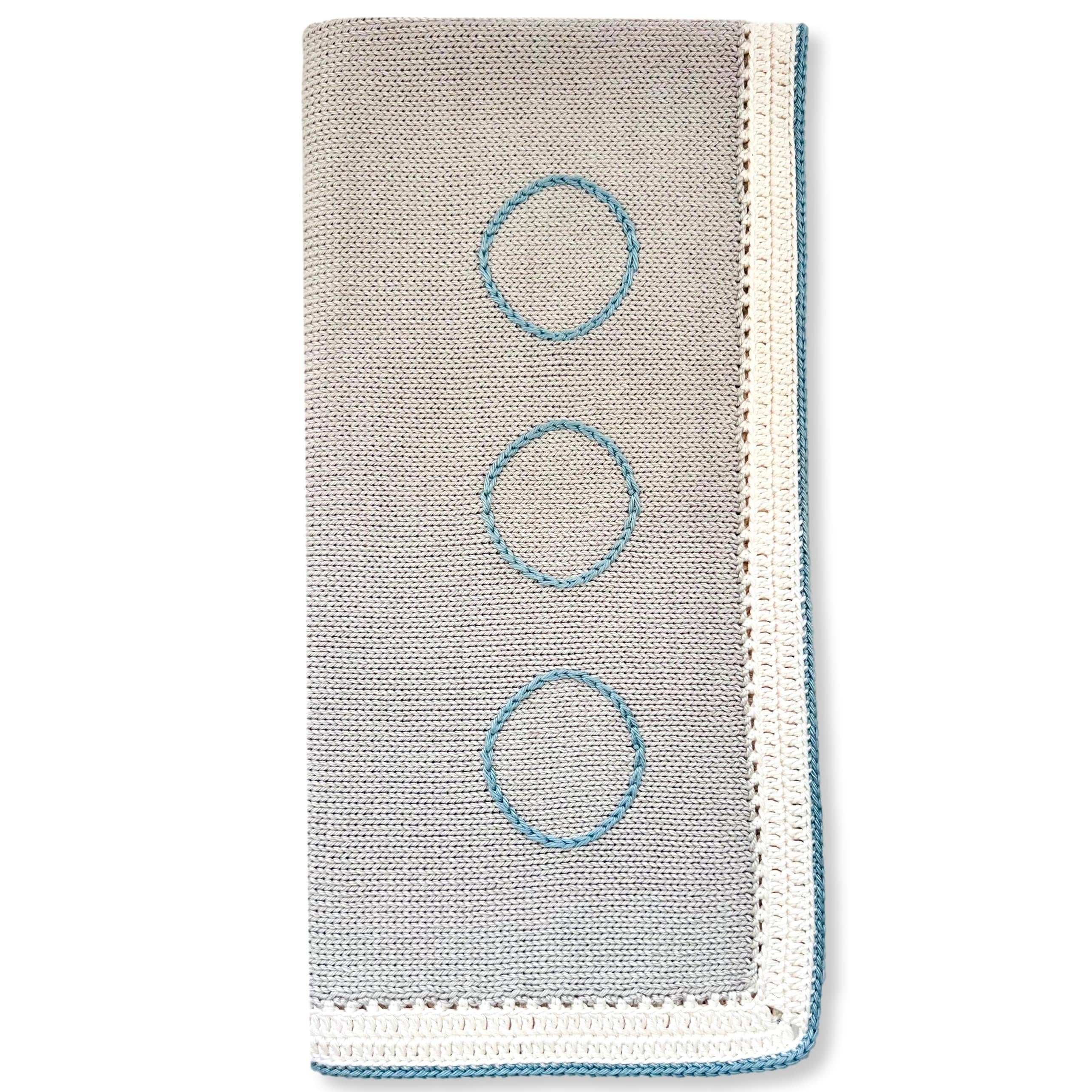 Whether it’s cozy stroller naps or everyday snuggles, our Argent Baby Blanket — accented with a Natural Shell Border and Stone Blue Trim — brings warmth, comfort, and meaning to every moment. Thoughtfully handcrafted, this snuggly knit blanket is as beautiful in purpose as it is in design.