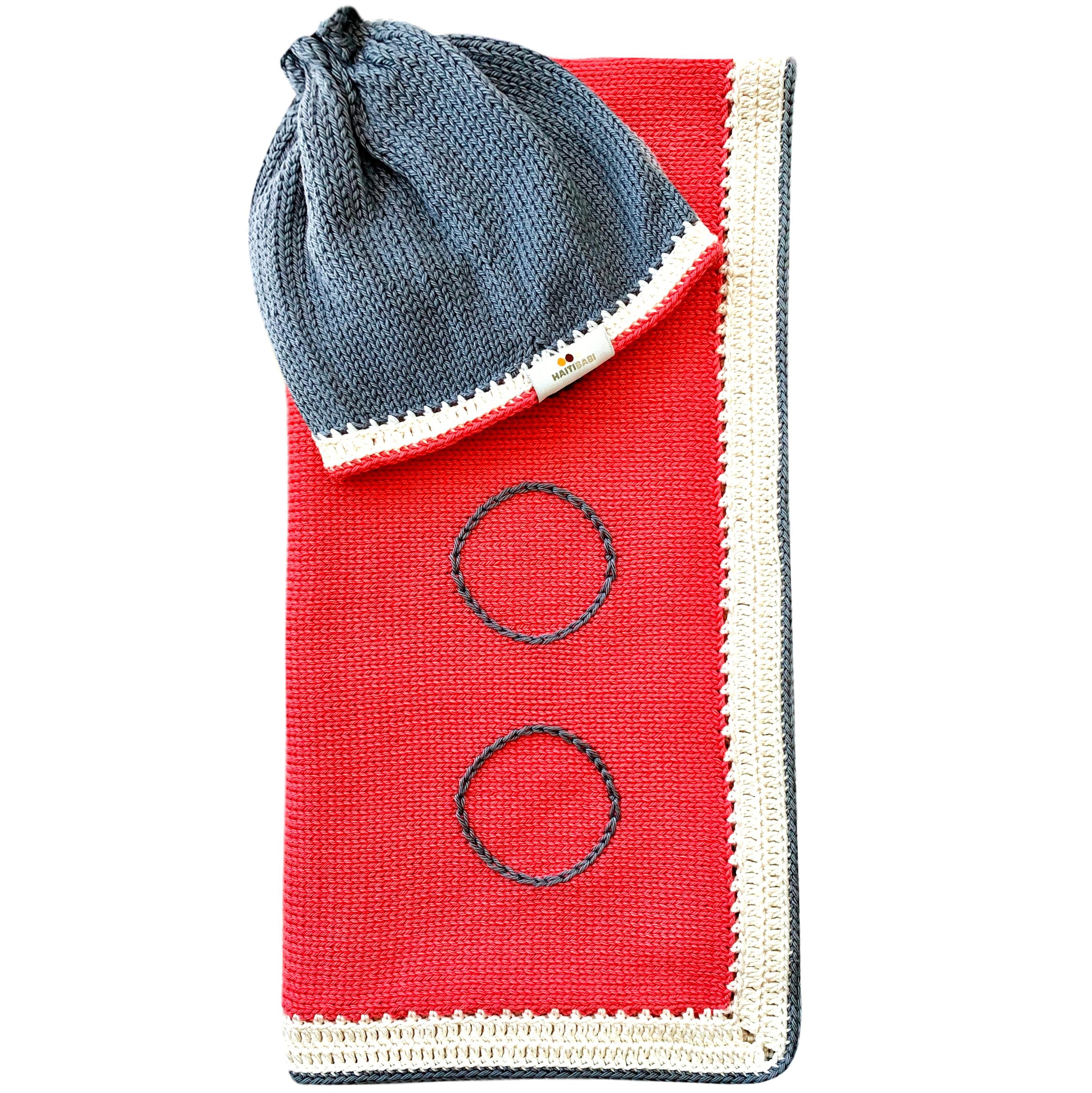Get ready for cooler days with our Guava Baby Blanket and Beanie Set, beautifully accented with a Natural Shell Border and Stone Trim. Soft, breathable, and machine washable, this set is perfect for keeping baby warm and cozy — without overheating.