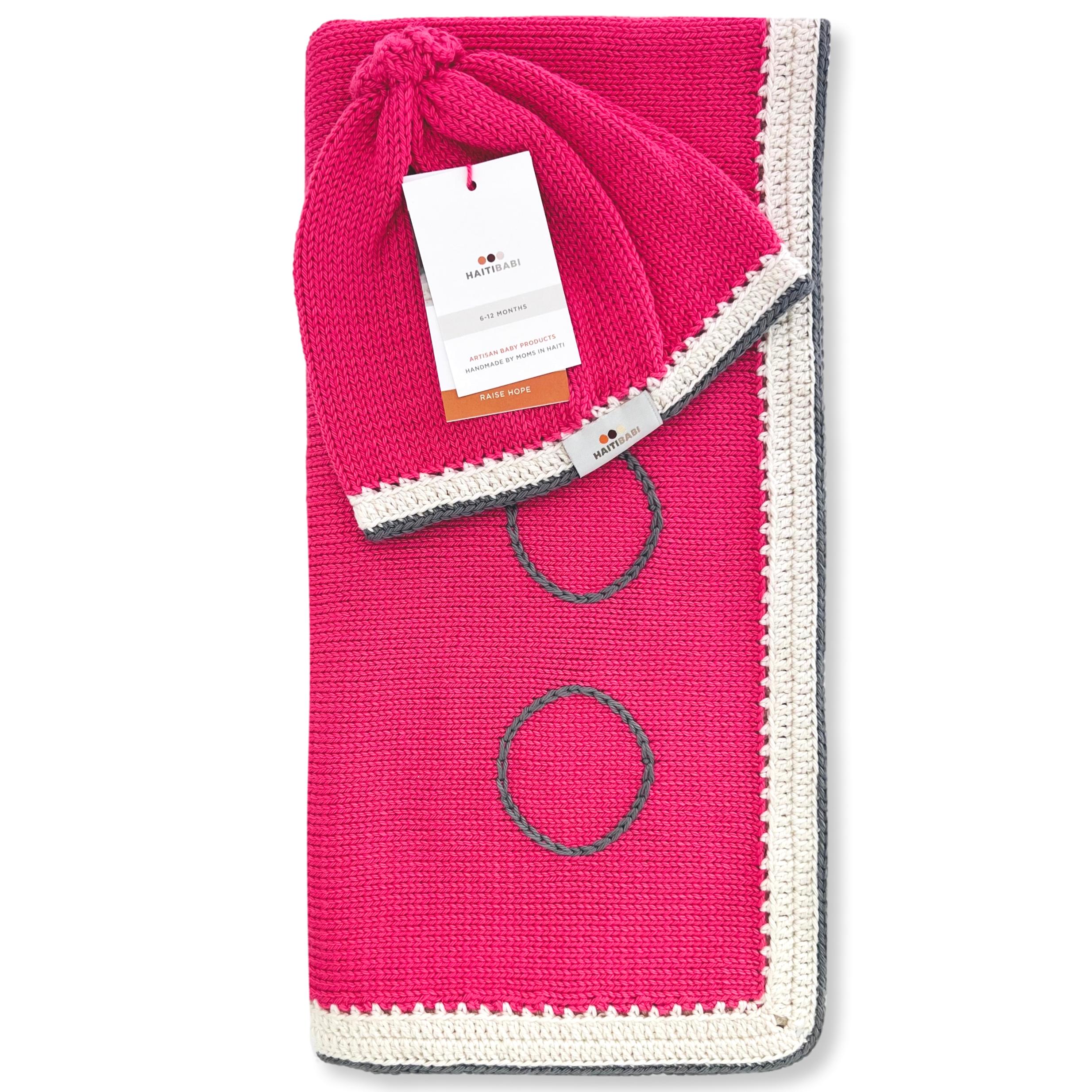 Each blanket and hat is hand-knit by moms in Haiti using premium, all-natural Ultra Pima Cotton. The luxuriously soft yarn is gentle against baby’s skin, won’t pill over time, and offers the perfect blend of warmth and breathability thanks to its unique knit texture.